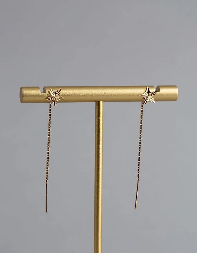 9ct Gold Diamond Cut Star Box Chain Threader Earrings