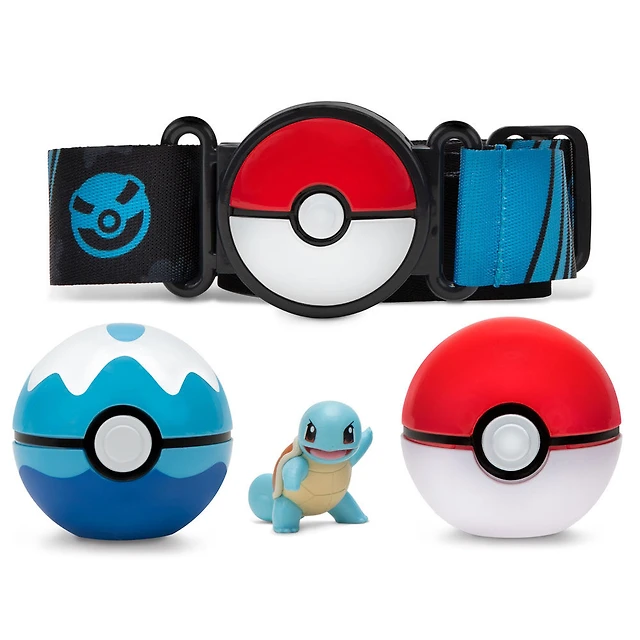 Pokémon - Clip N' Go Poke Ball Belt Set - Great Ball, Poke Ball, Luxury Ball, 2"Charmander#1, 2"Pikachu #1, & Blue Belt