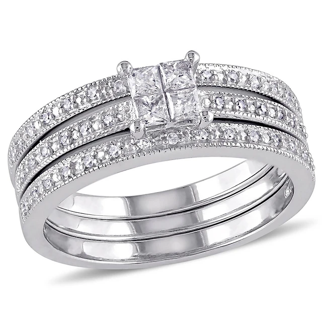 0.50 CT. T.W. Diamond Double Row Bridal Set 10K White Gold