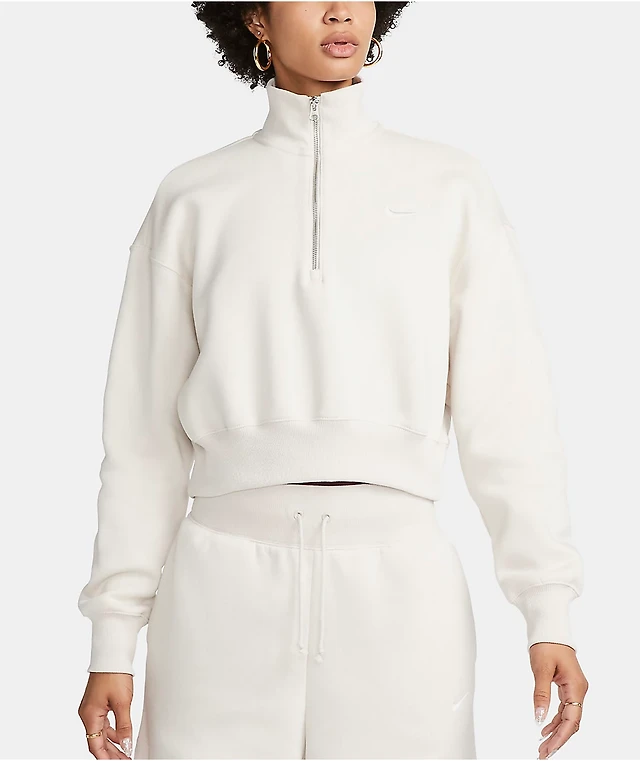 Nike Sportswear Phoenix Cream Quarter Zip Crop Sweatshirt