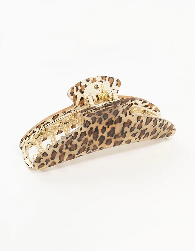 Leopard Print Plastic Curved Hair Claw Clip