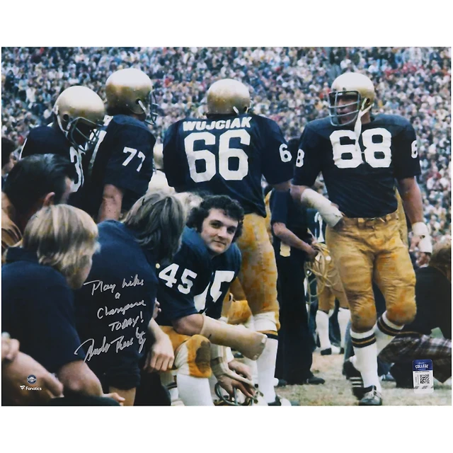 Rudy Ruettiger Notre Dame Fighting Irish Autographed 16" x 20" Sideline Photograph with "Play Like A Champ Today" Inscription