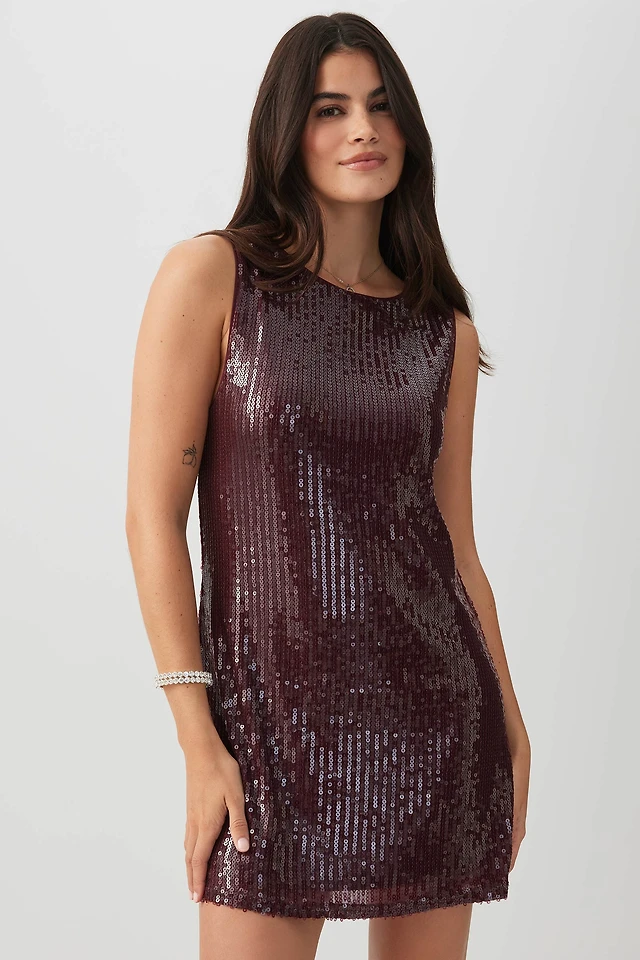 Ardene Contour Off The Shoulder Mini Dress in Burgundy | Size Large | Elastane/Polyamide