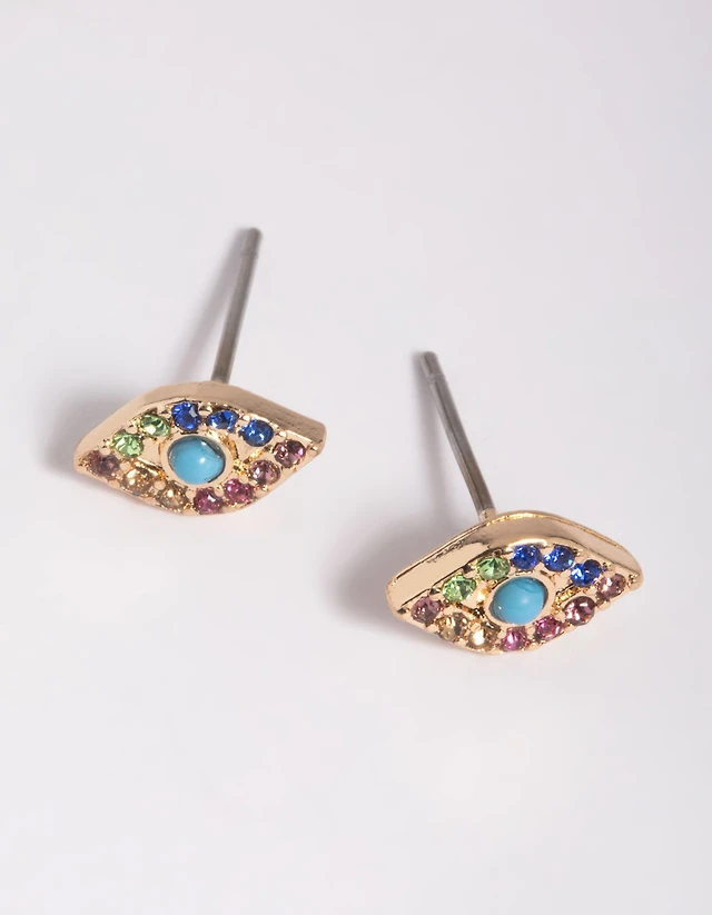 Gold Plated Cubic Zirconia Evil Eye Earrings 3-Pack