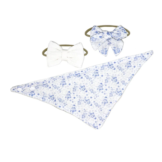 Amor Bebe 3 Piece Muslin Reversible Bib with 2 Headbands Set: Floral