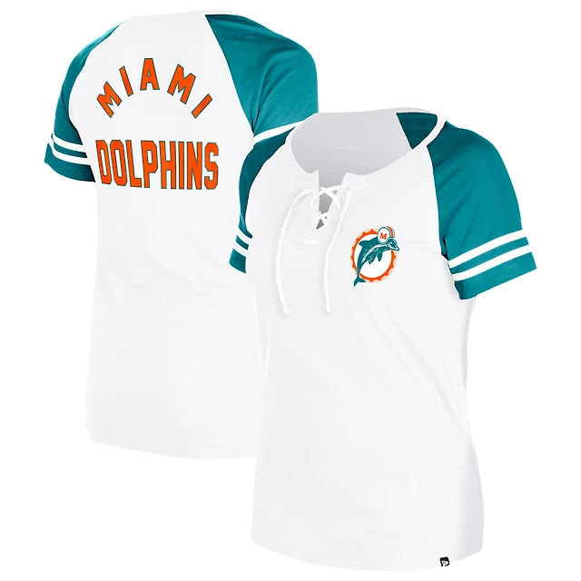Women's Fanatics Aqua Miami Dolphins Won and Done Lace-Up Raglan T-Shirt