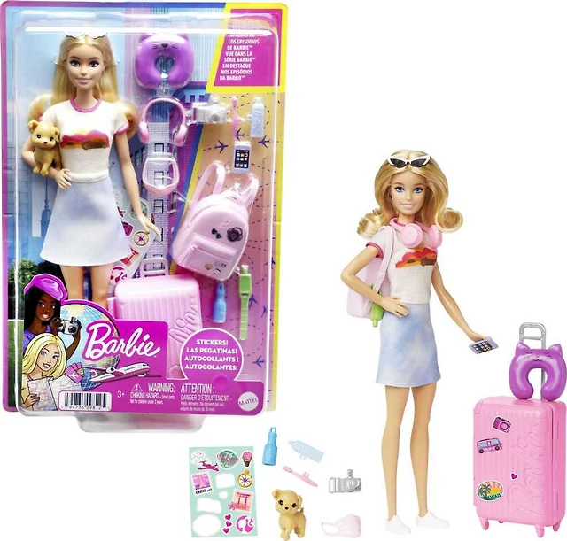 Barbie Skipper Doll & 1 Accessories, Travel Set with Luggage, Sticker Sheet & More