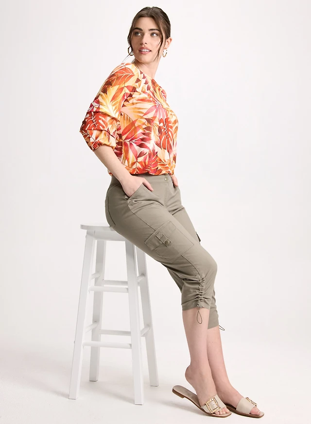 Tropical Pinched Sleeve Top & Drawstring Hem Cargo Pants
