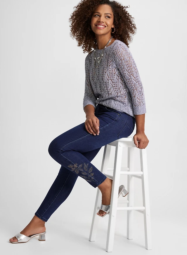Cascade-Front Cover Up & Embroidered Pull-On Jeans