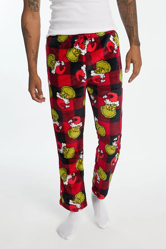 The Grinch Plaid Printed Crew Neck Plush Onesie