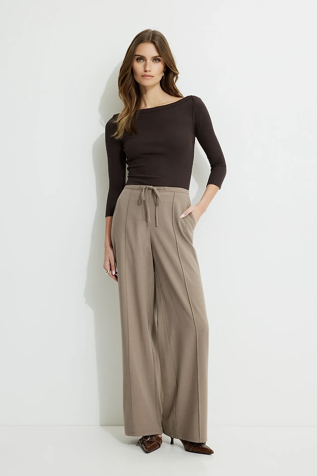 Lightweight Wide-Leg Pants with Front Pleat Elastic Waist & Pockets by Froccella