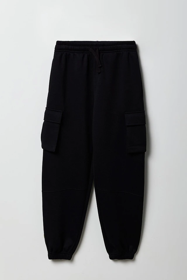 Ardene Kids Smooth Stretch Cargo Joggers in Black | Size Small | Polyester/Elastane