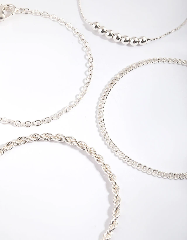 Silver Geometric Bracelet & Anklet 4-Pack