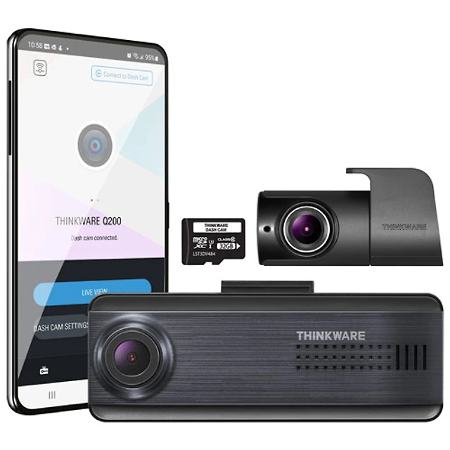 Thinkware Q200 1440p Dash Cam with Wi-Fi, GPS, & Rear Camera