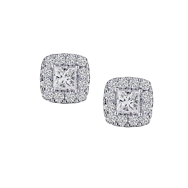 0.50 CT. T.W. Composite Diamond Cushion Frame Vintage-Style Stud Earrings in 10K White Gold