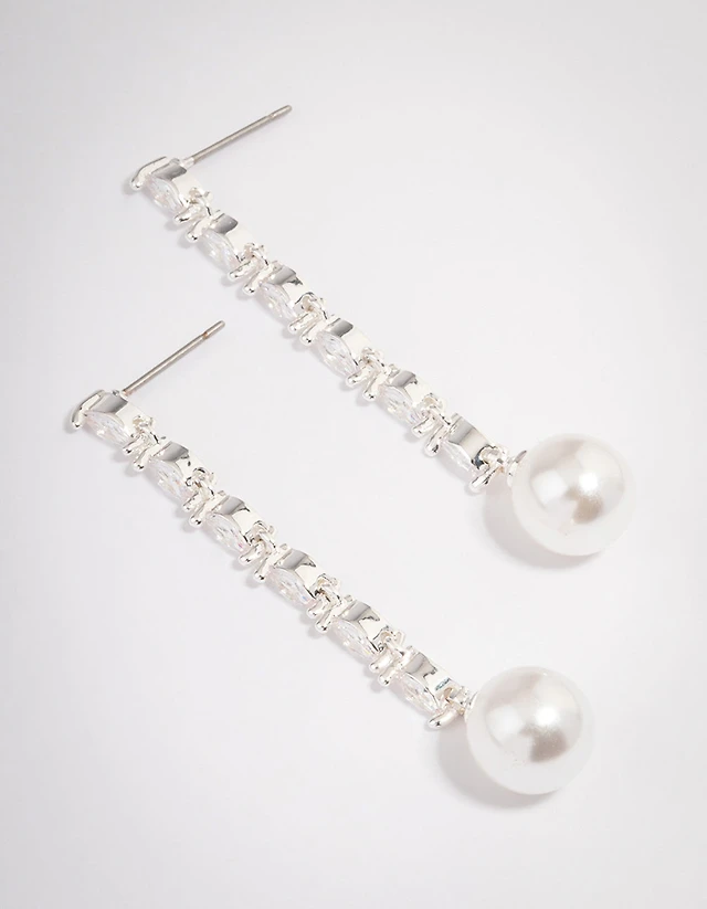 Silver Plated Fine Cubic Zirconia Round Pearl Drop Earrings