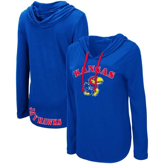 Women's Colosseum Royal Kansas Jayhawks My Lover Lightweight Hooded Long Sleeve T-Shirt