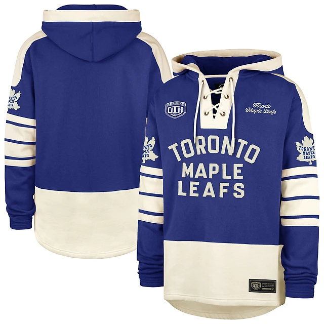 Men's '47 Royal/Cream Toronto Maple Leafs Old Time Hockey Lace-Up Pullover Hoodie