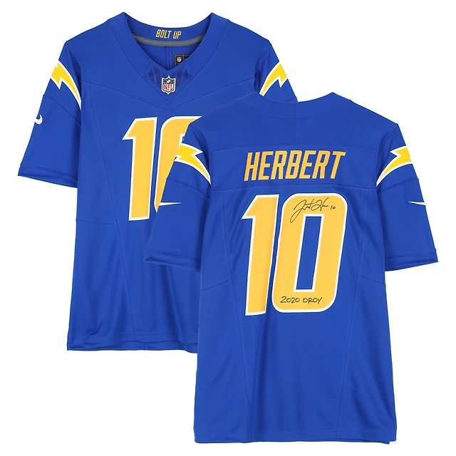 Justin Herbert Los Angeles Chargers Autographed Nike Royal Vapor F.U.S.E. Limited Jersey with "2020 OROY" Inscription