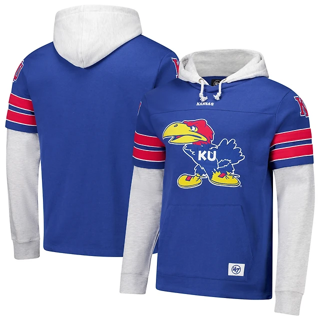Men's '47 Royal Kansas Jayhawks Blitz Cornerback Lacer Pullover Hoodie