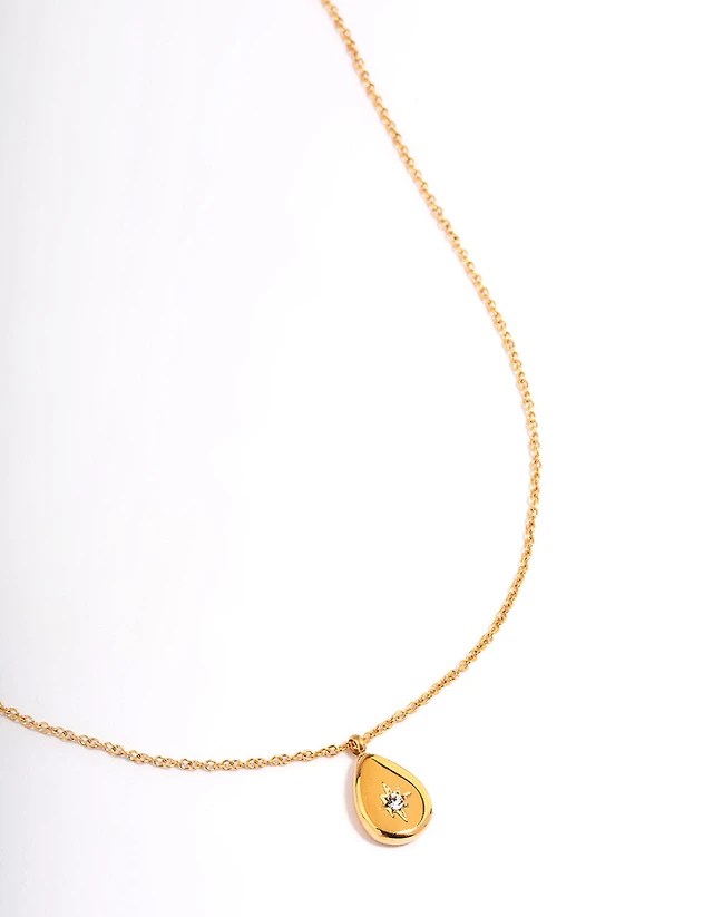 Waterproof Gold Plated Stainless Steel Teardrop Stone Pendant Necklace