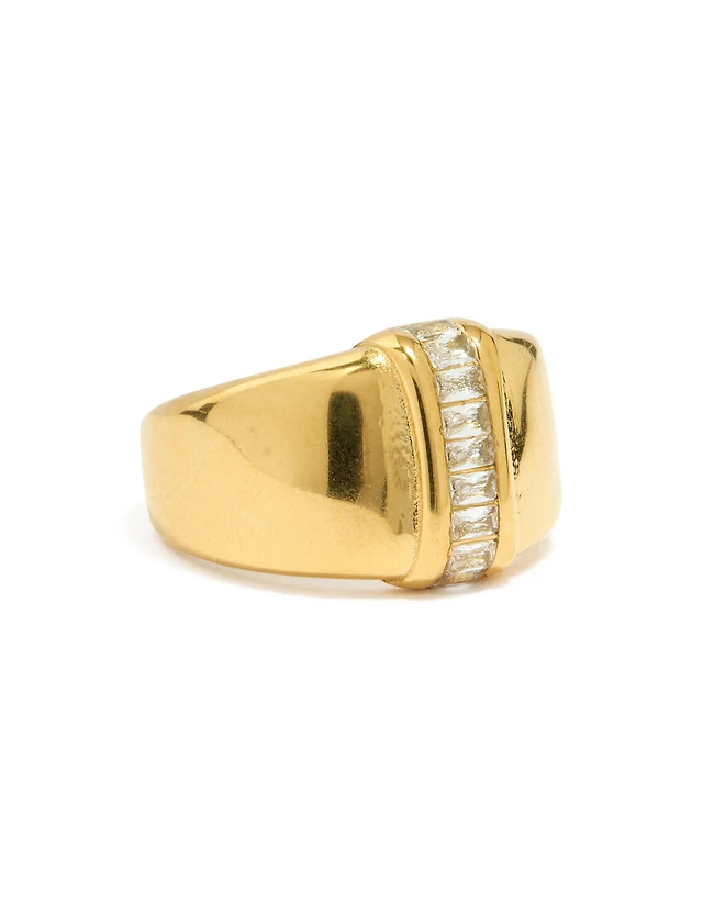 Waterproof Gold Plated Stainless Steel Cubic Zirconia Statement Ring