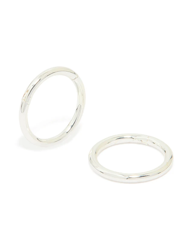 Waterproof Stainless Steel Cubic Zirconia & Smooth Chunky Huggie Earrings 2-Pack