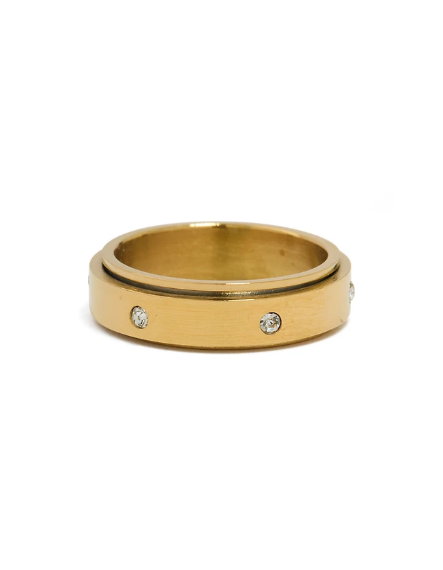 Waterproof Gold Plated Stainless Steel Swivel Stone Ring