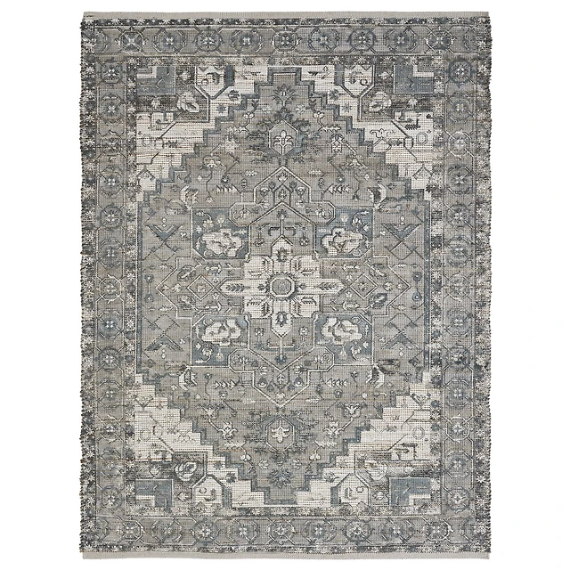 Cotton Casuals Shuttle Weave Rug - Ivory/Light blue