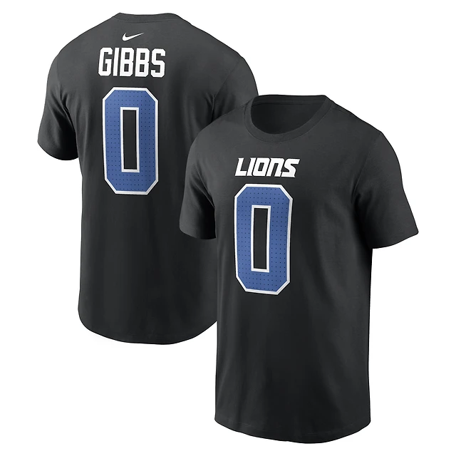 Men's Nike Jahmyr Gibbs Black Detroit Lions Carbon Name & Number T-Shirt