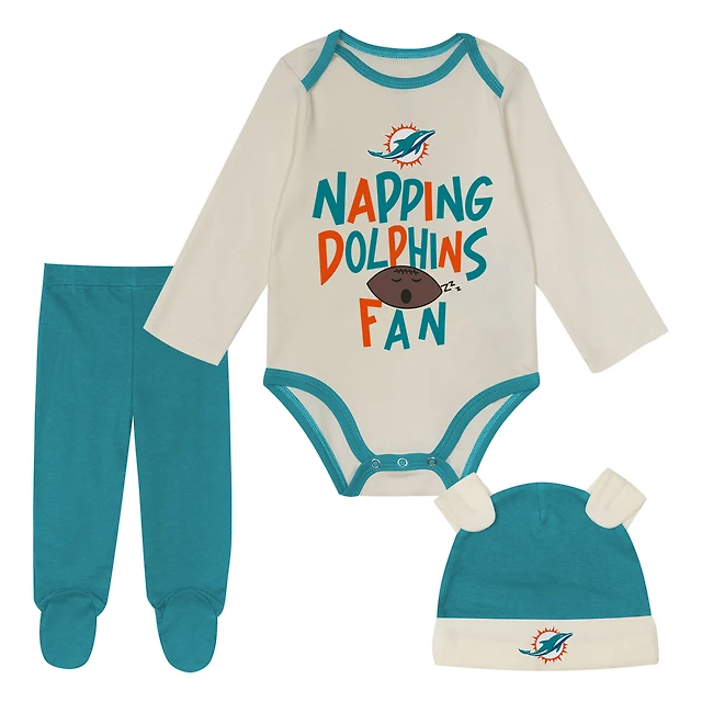 Newborn Outerstuff Aqua Miami Dolphins Little Champ Three-Piece Long Sleeve Bodysuit, Pants and Cuffed Hat Set