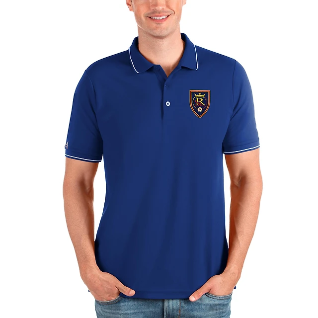 Men's Antigua Heather Black Real Salt Lake Primary Team Logo Course Quarter-Zip Pullover Top