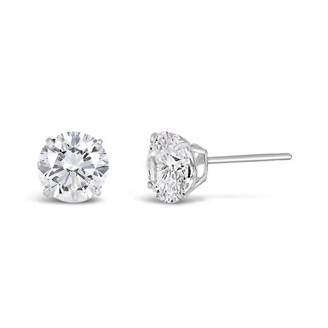 10K White Gold 8mm Round Cubic Zirconia Studs