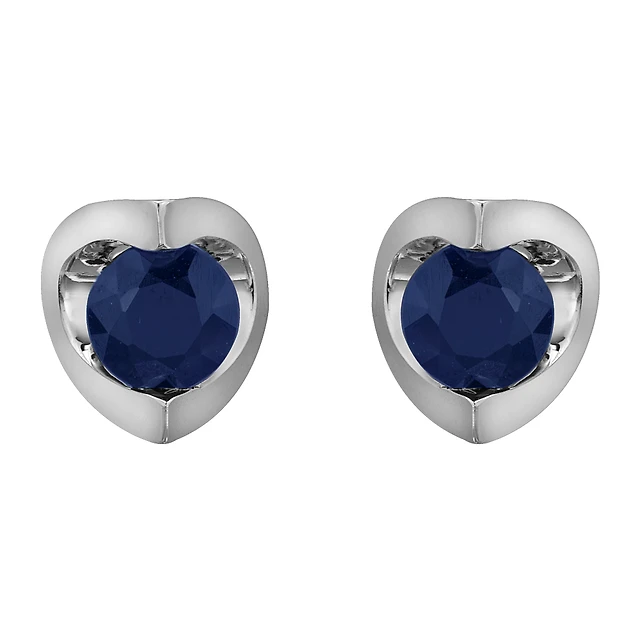 6.0mm Hear-Shaped Lab-Created Blue Sapphire Stud Earrings in 10K White Gold