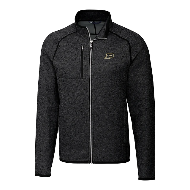 Men's Cutter & Buck Heather Charcoal/Heather Gray Chicago Cubs Mainsail Full-Zip Hooded Jacket