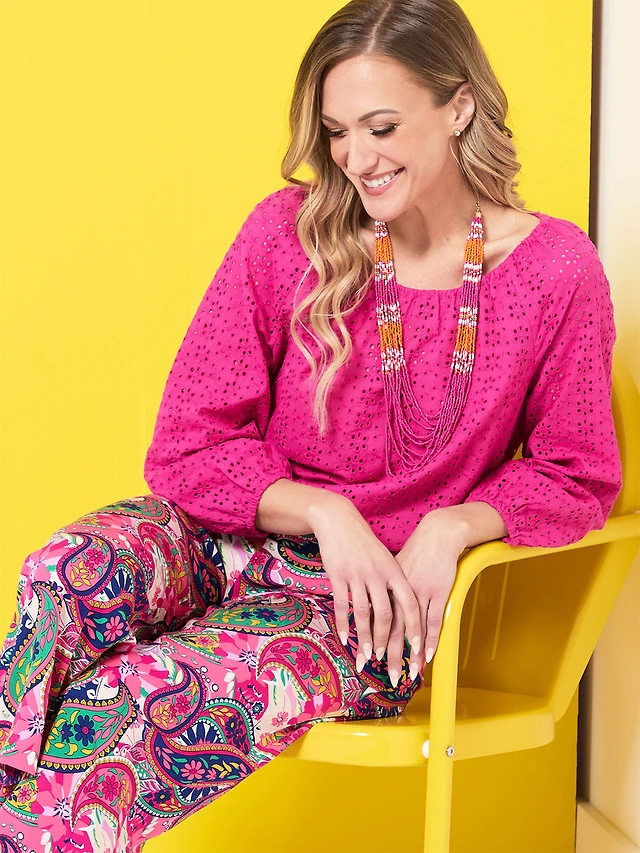 Long Sleeve Printed Cropped Scoop-Neck Sleep Tee