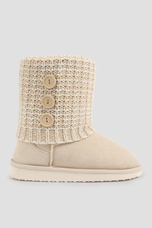 Ardene Flip Collar Bootie Slippers in Beige | Size | 100% Recycled Polyester/Faux Suede | Eco-Conscious