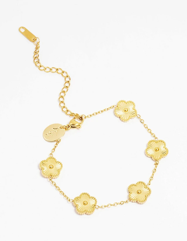 Waterproof Gold Plated Stainless Steel Black Flower Bracelet