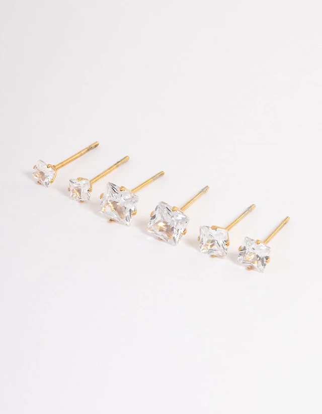 Waterproof Gold Plated Stainless Steel Cubic Zircconia Stud Earring Pack