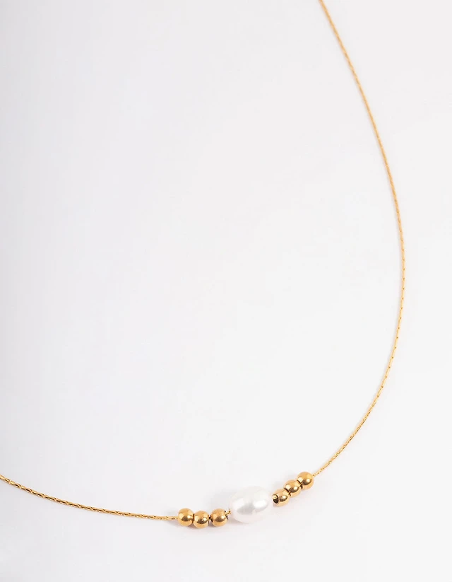 Gold Plated Stainless Steel Ball & Freshwater Pearl Necklace