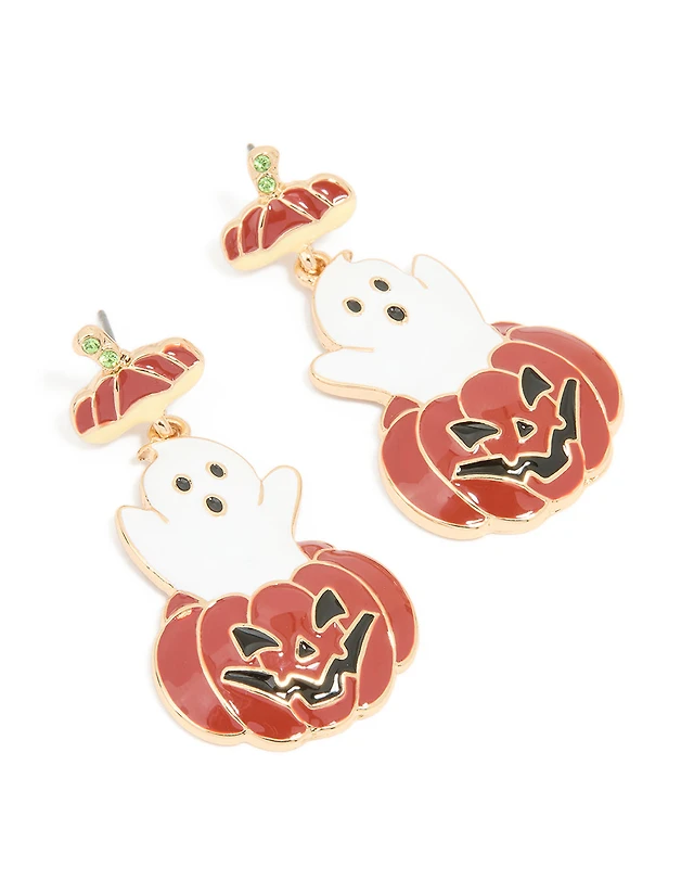 Gold Friendly Ghost Pumpkin Drop Earrings