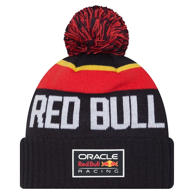 Men's New Era Black Haas F1 Team Wordmark Sport Cuffed Knit Hat with Pom