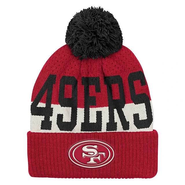 Girls Youth New Era Scarlet San Francisco 49ers Cabled Cuffed Knit Hat with Pom
