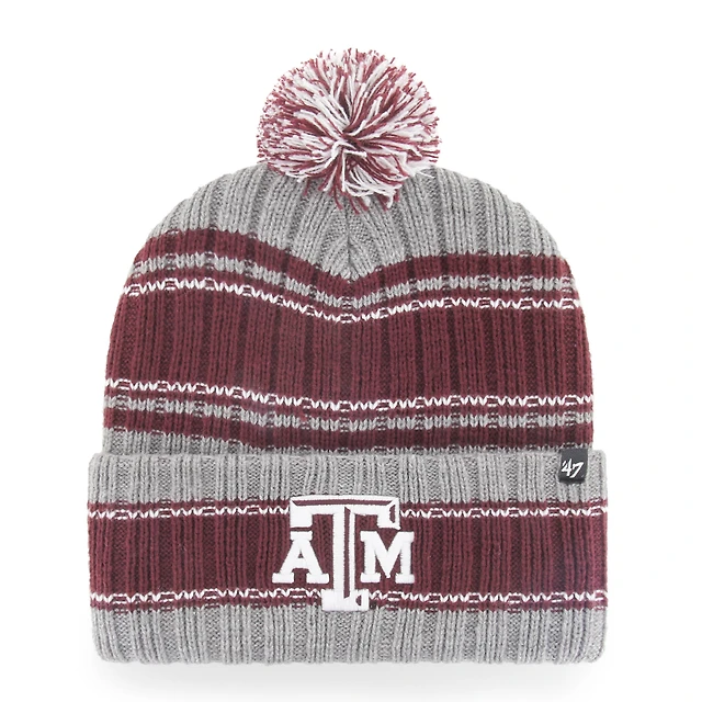 Men's '47 Charcoal Texas A&M Aggies Stack Striped Cuffed Knit Hat with Pom