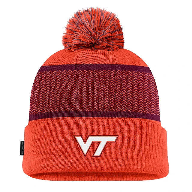 Youth Nike Orange Virginia Tech Hokies 2024 Sideline Peak Cuffed Knit Hat with Pom