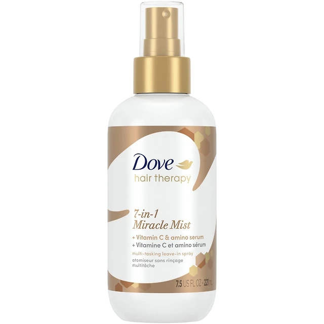 Dove Hair Therapy 7-in-1 Miracle Mist Leave-In Multitasking Hair Spray for visibly damaged hair + Vitamin C & Amino Serum to strengthen and nourish hair 221 ml