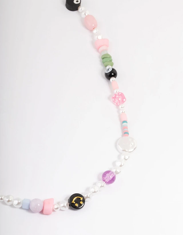 Freshwater Cultured Pearl and White Lab-Created Sapphire Cluster Station Double Strand Necklace in Sterling Silver