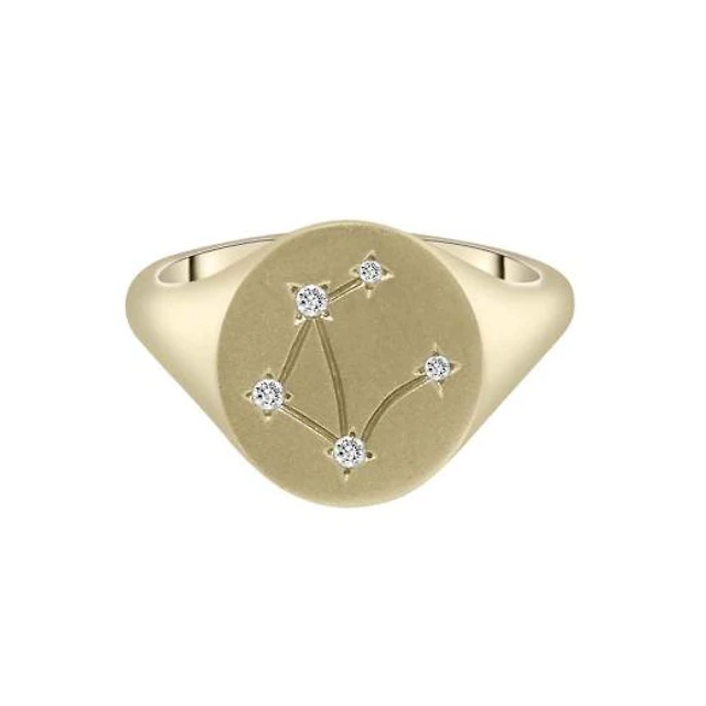Zodiac 10K Yellow Gold Diamond Libra Signet Ring