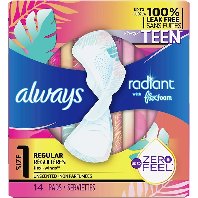 Always Radiant FlexFoam Pads for Women Size 2 Heavy Flow Absorbency with Wings, 36 Count