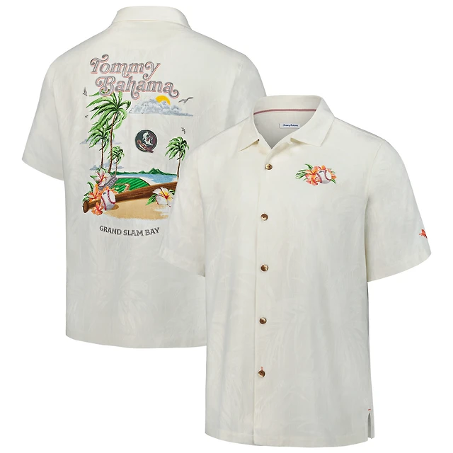 Men's Tommy Bahama Cream Wake Forest Demon Deacons Castaway Game Camp Button-Up Shirt